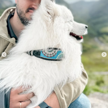 Įspūdingi brangakmenių papuošimai: antkaklį puošia išskirtiniai brangakmeniai, kurie jūsų augintinio aprangai suteikia prabangos ir žavesio. Šie brangakmeniai paryškina apykaklės dizainą ir sukuria prabangą dvelkiančią detalę.